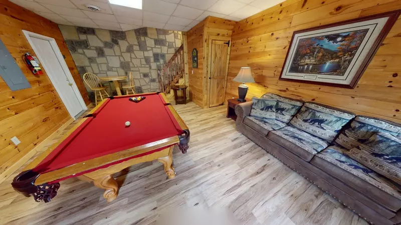 - Game Room: Features a Pool table, 60 Game Multi-cade, bar seating, and a flat-screen TV, providing entertainment.